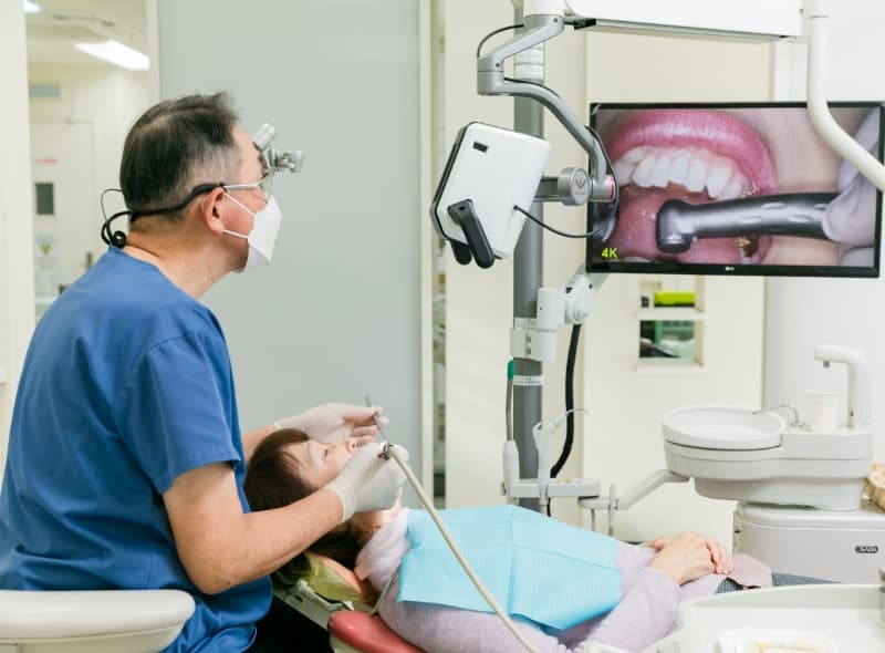 当院では、治療の成功率と歯の寿命を延ばすために、ラバーダム防湿やデジタルマイクロスコープ「ネクストビジョン」を使用した精密根管治療を推奨しています。ラバーダムは治療中に唾液や口腔内の細菌が根管に入り込むのを防ぎ、治療の成功率を大幅に高めます。デジタルマイクロスコープ「ネクストビジョン」は 肉眼の最大80倍まで視野を拡大することで、複雑な根管の形状や見落としがちな感染源、微細なヒビなどを正確に把握し、再発リスクの低い治療を提供します。
