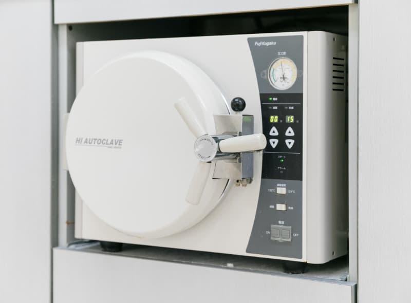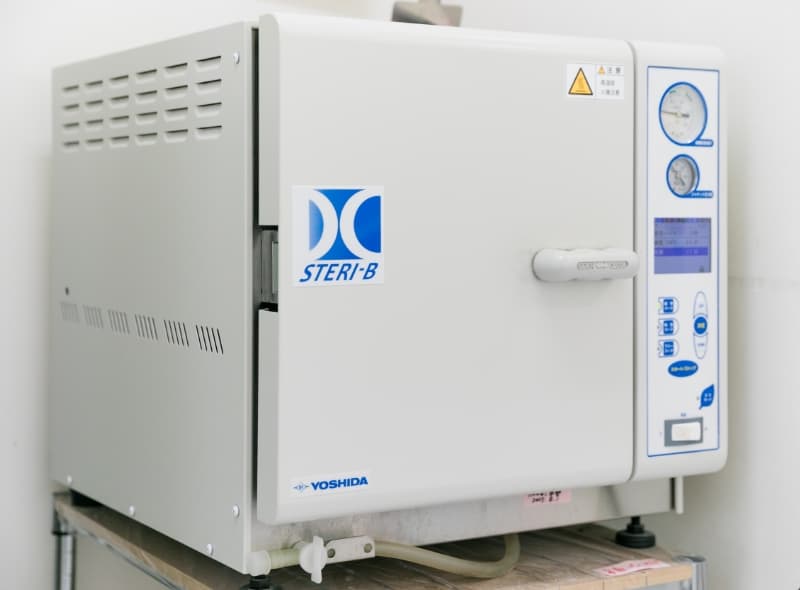 治療に使用するタービンやエンジンなどのハンドピース類はもちろん、歯の根管治療(神経の治療)で使う細い針金状のファイルや歯を削るなどの際に使用する切削器具のバーに至るまで、治療器具は使い回しをせず、すべて患者さまごとに交換・滅菌しています。ハンドピース類とバー・ファイルは上述の通り、国際標準規格(クラスB)のオートクレーブで徹底的に滅菌したものを使用しているので安心です。