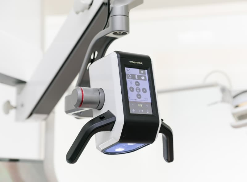 当院では患部を最大80倍まで鮮明に拡大する高性能なデジタルマイクロスコープ「ネクストビジョン」を導入しています。治療を受けながら患者さま自身もその拡大映像をモニターで確認できるので「今、歯のどの部分を治療しているのか」「問題のある箇所はどこか」をリアルタイムで見ていただくことで、治療への不安を軽減し、ご自身の歯の状態と治療内容を深く理解することができます(見るのが怖い方は目をつぶったままで大丈夫です)。主に根管治療や充填(歯の詰め物)、治療説明の際に使用します。